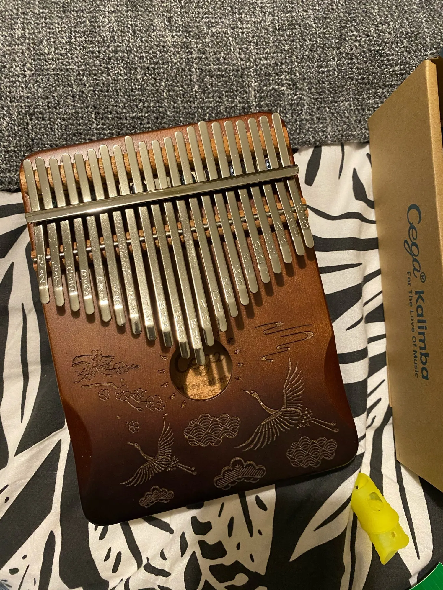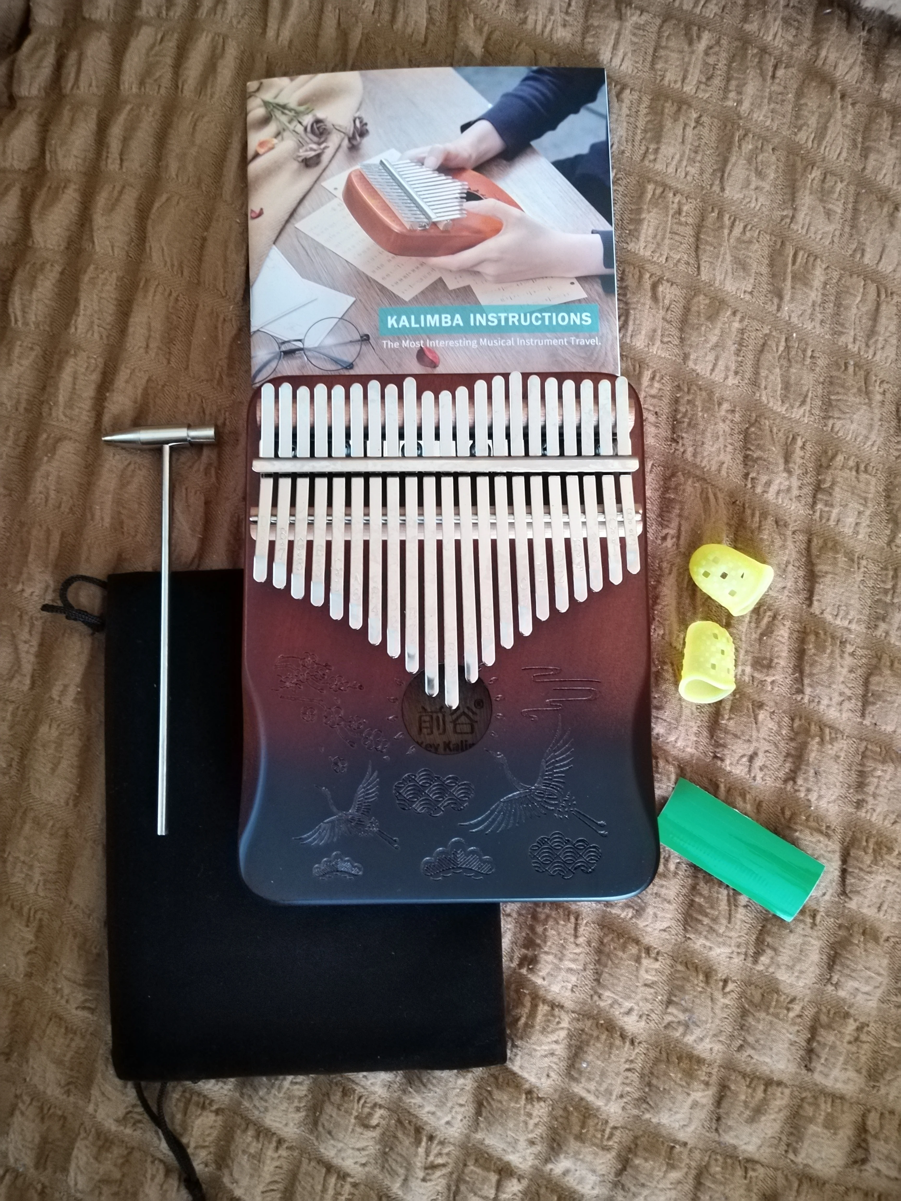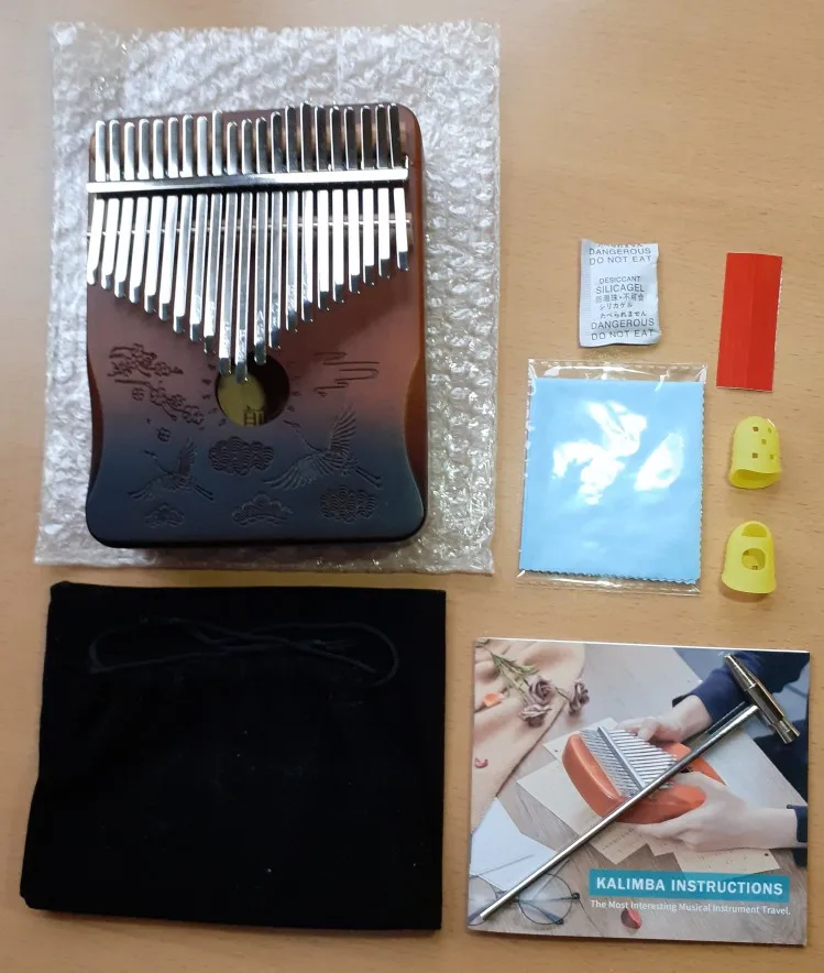 Chic kalimba, very high quality! Sounds great, complete with a cover, a self-teacher, a hammer and protection on the fingers.