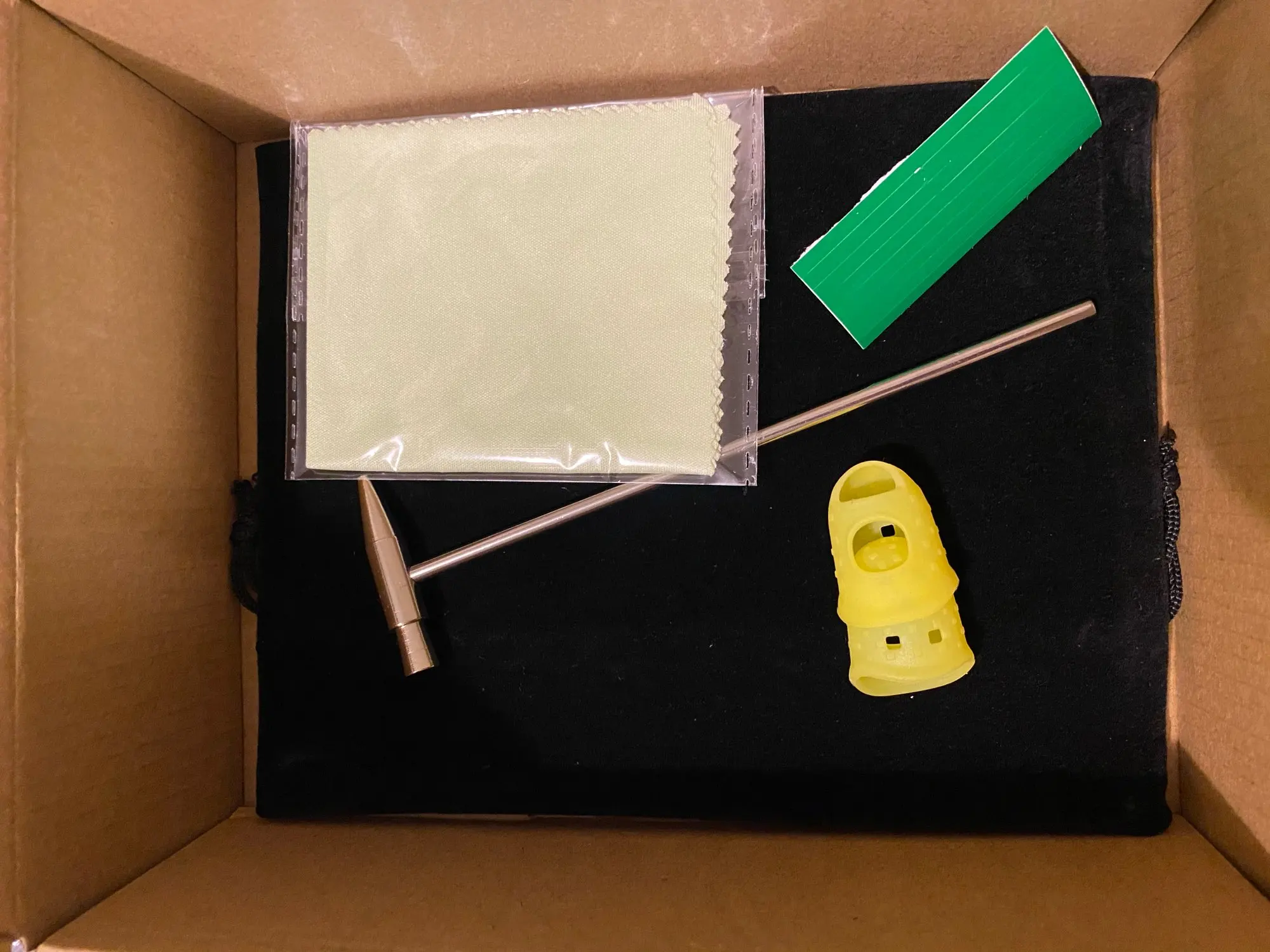 Sounds very nice. Delivery fast. Included instruction, cover, cloth and hammer.