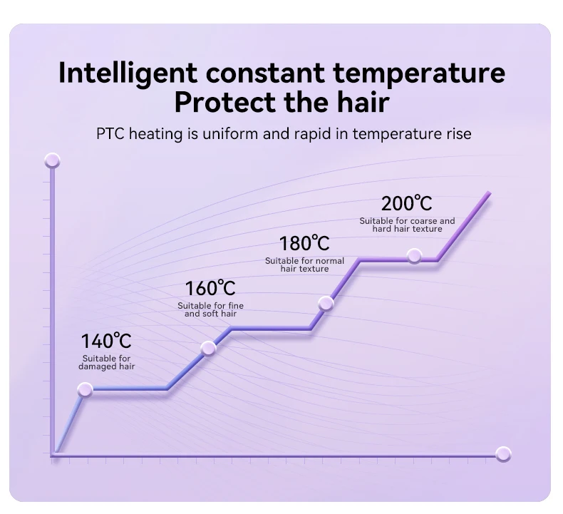 2. After heating, select the temperature suitable for your own hair (the minimum temperature for fine and soft hair, the middle temperature for medium and normal hair, and the maximum temperature for hard hair).