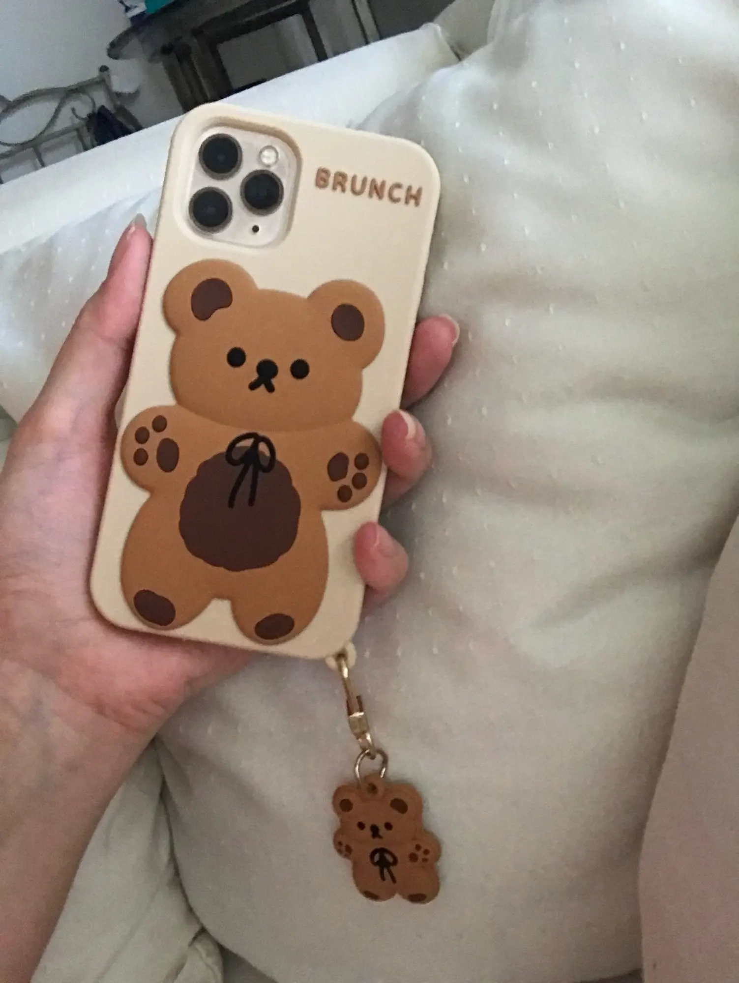 This bear case is really amazing, easy to put on and easy to take off the phone. The bear charm was such a cute touch to it. I had no troubles with it. This item is what you see in the photos. 100% Authentic.