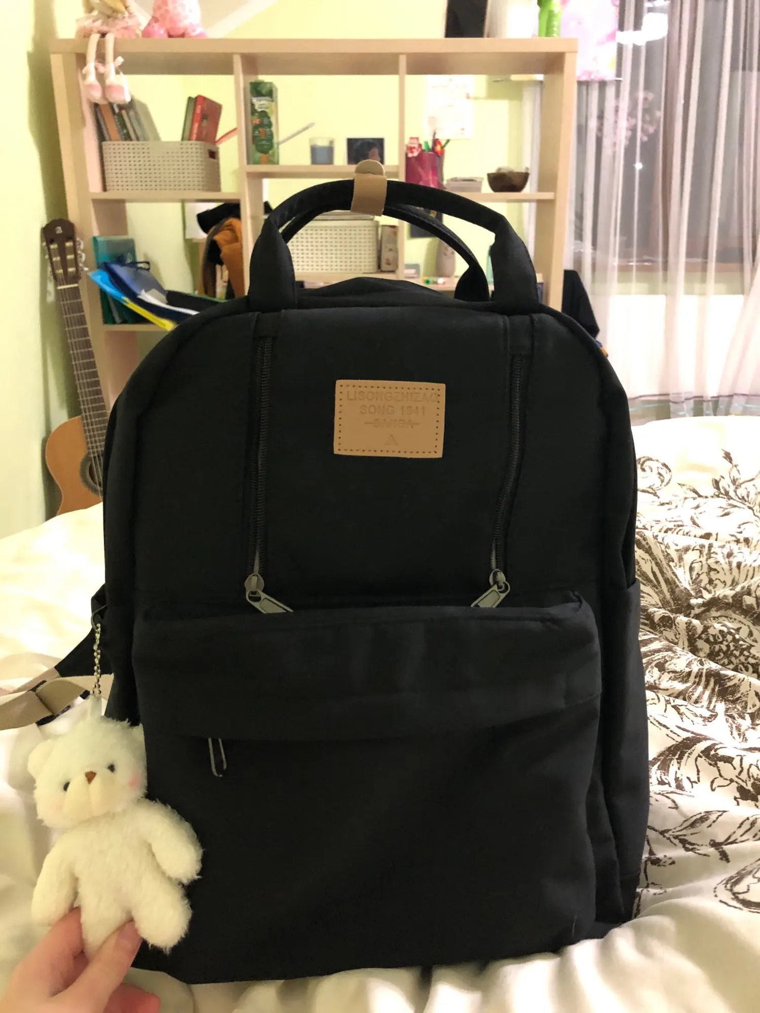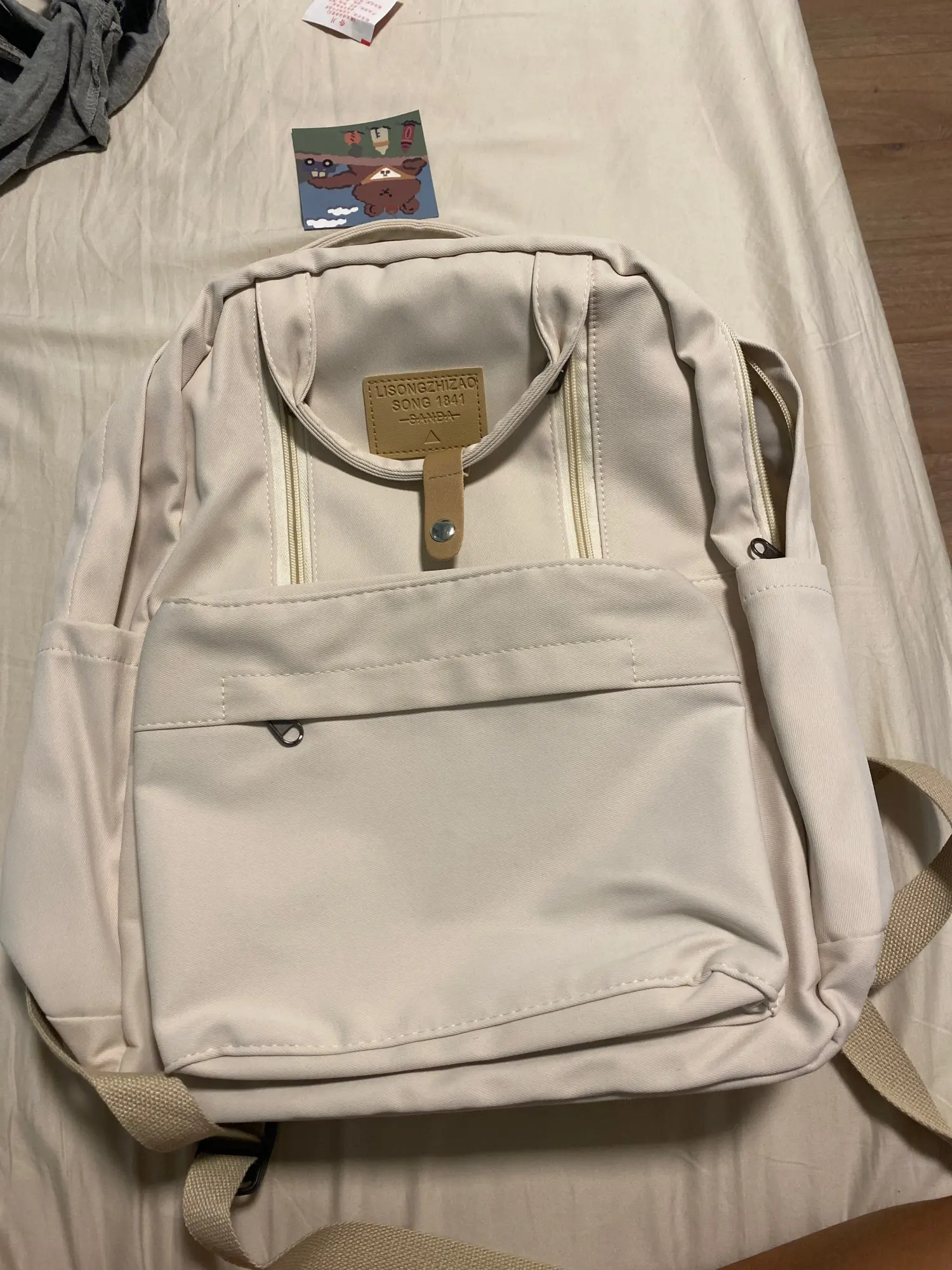 Backpack is super! Beautifully sewn, the fabric is soft and nice. Plus a teddy bear keychain. Thank you! Delivered quickly about 2 weeks.