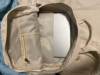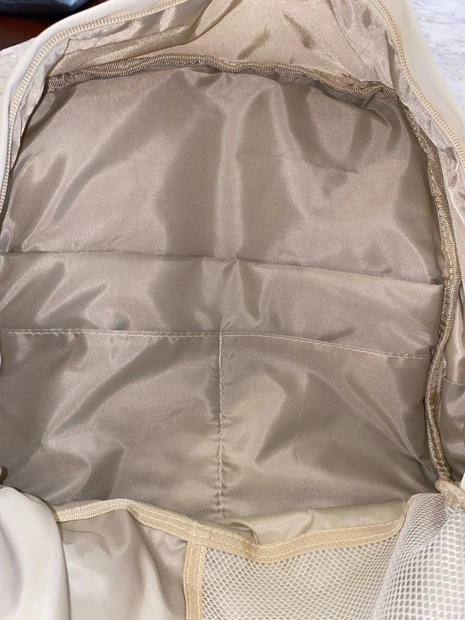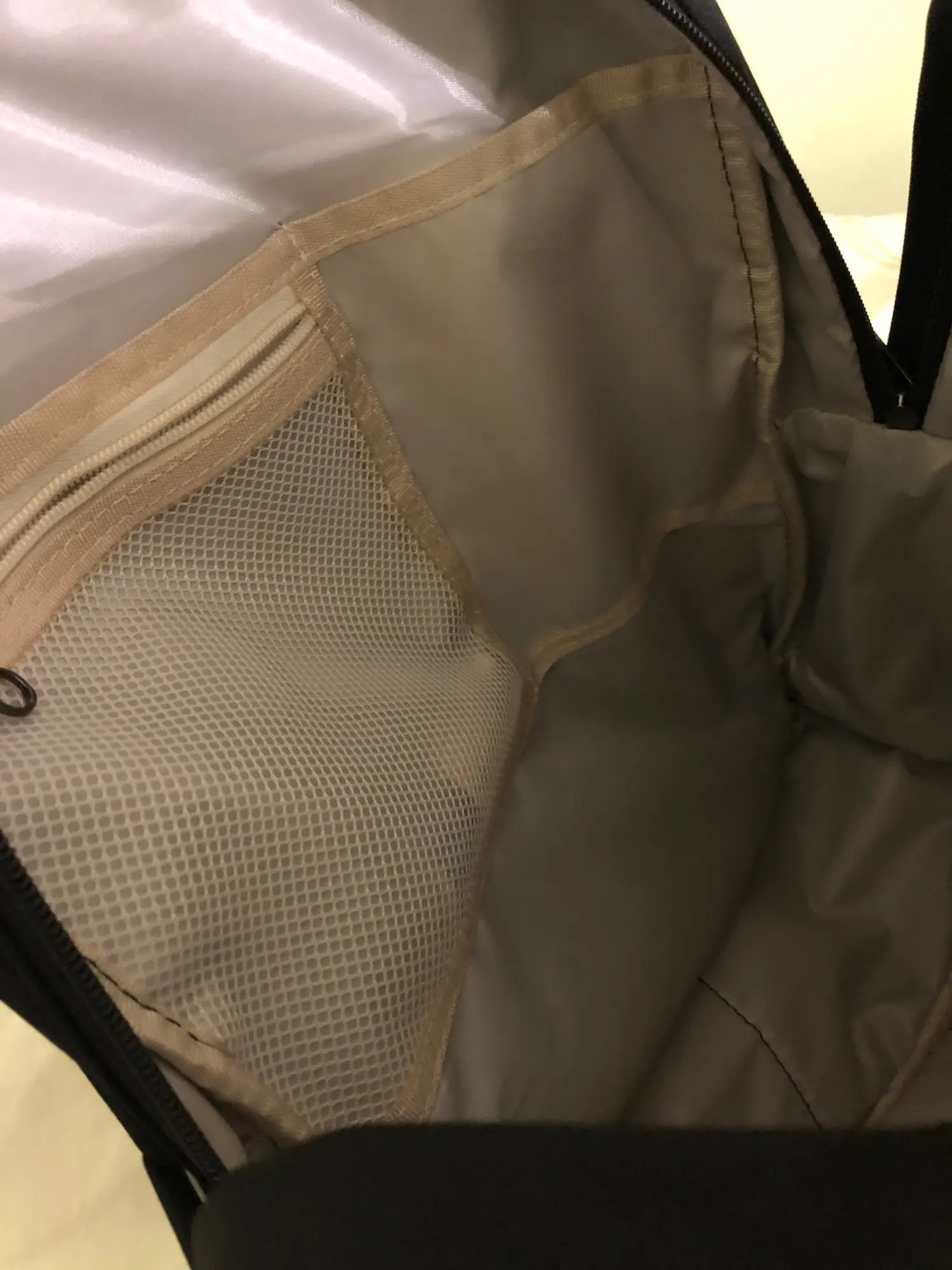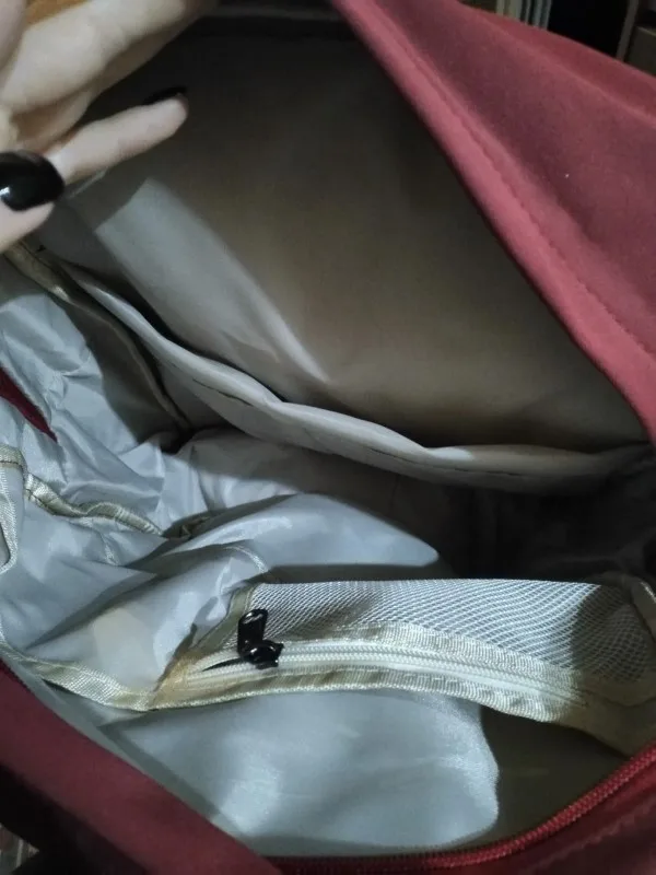 Bag received well in advance! Large capacity and plenty of pockets! The two front zippers give access to 2 different pockets. The seams seem resistant and the fabric of the bag is soft! Thank you! I would definitely recommend!