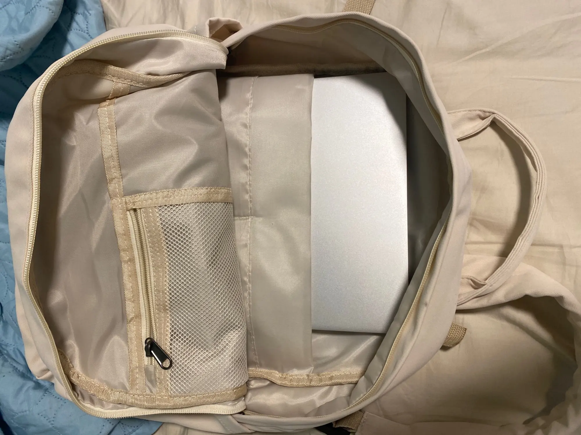 Im so happy with this purchase, exactly what I needed. Fits 15.6” laptop. You can feel the quality of the fabric, also i like the color! Recommend.