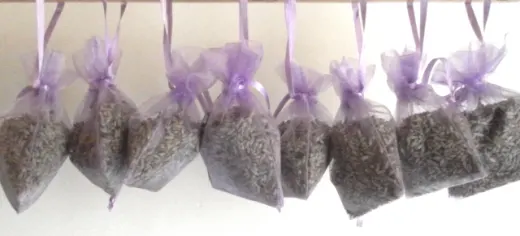Fill small sachet bags with dried lavender flowers. Put a bag of lavender in the drawer to keep linen fresh, or hang it in the wardrobe for a light scent of lavender.