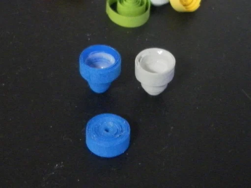Use a long strip of quilling paper to make a tight coil, and gently push the centre of the coil outwards to form the shape of a pot. Apply glue inside to strengthen the pot.