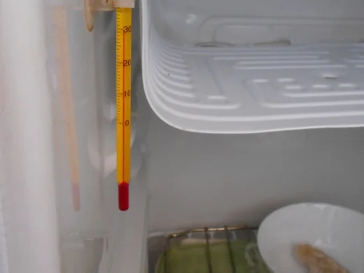 The temperature dropped 2° C when I opened the door of the fridge. It is now around 30° C. Try not to open the door too often if the room temperature is only 15° C, like in my house!