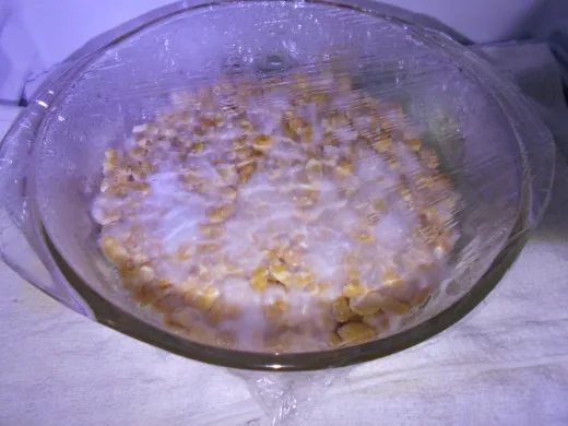 2. Drain the water and dehull the soybeans. I find that leaving some hulls with the beans does not affect the taste or quality of the tempeh.