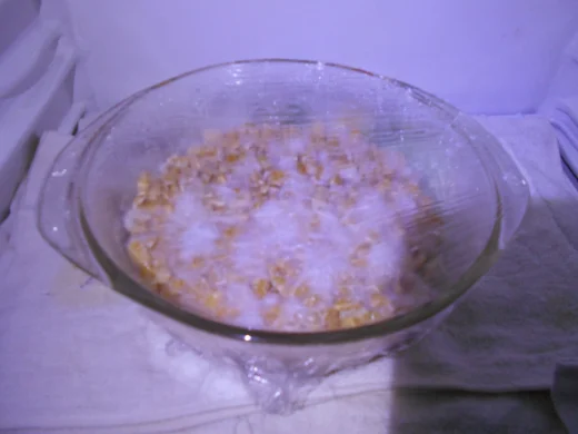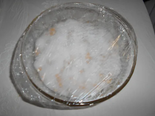Place the chunk in a small bowl and cover it with cling wrap. Pierce holes all over the cling, wrap it with a toothpick and place the bowl in the incubator for at least two days.