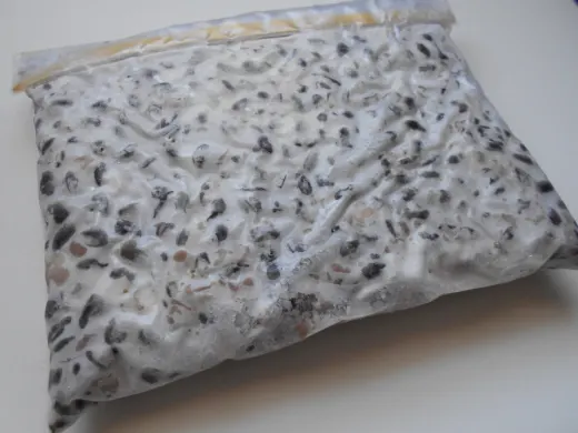 Here is some tempeh made with different types of legumes in Ziploc bags for storing in the freezer.