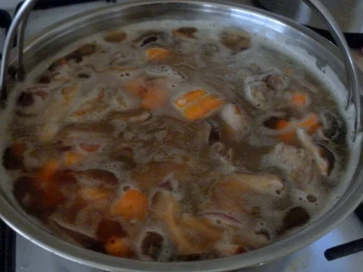 Bring the water to the boil. Lower the heat and let the broth boil for 10 minutes.