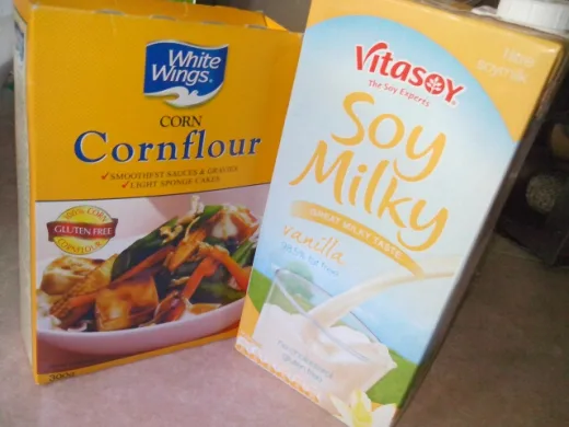 Mix cornflour with 2 tablespoons of soy milk until the cornflour dissolves.