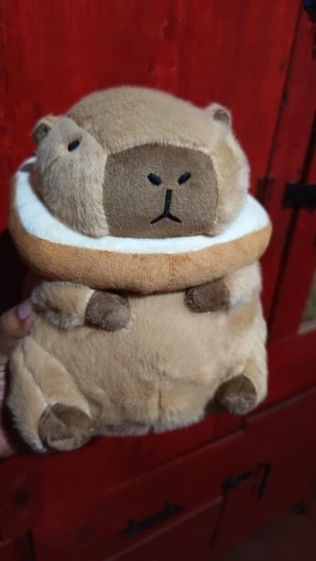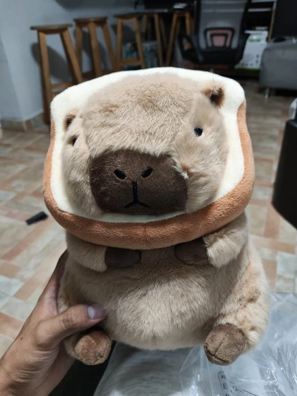 This capybara plush is very lovely! The quality of the material is excellent. The toast around his head is removable, which is very cute. Thank you for such a nice item.