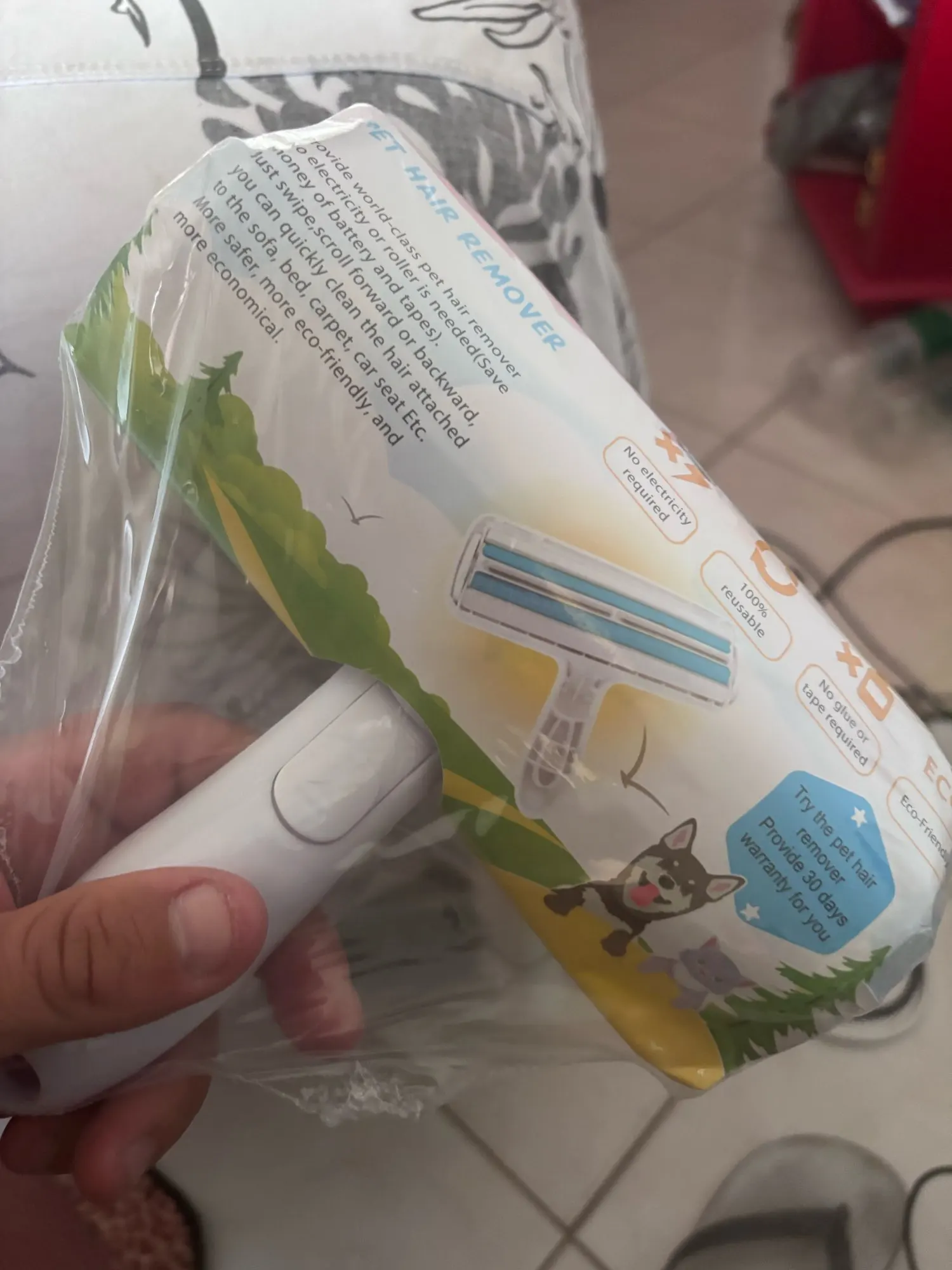 Excellent product, arrived quickly. The only detail is that mine arrived crooked, but it doesn't affect its usefulness, which is very good. You can see an example with my chair, the amount of hair it manages to remove.