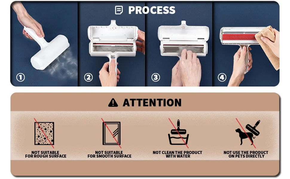 EASY TO CLEAN – Upon picking up loose pet hair, simply press down on the release button to open and empty out the fur remover’s waste compartment.