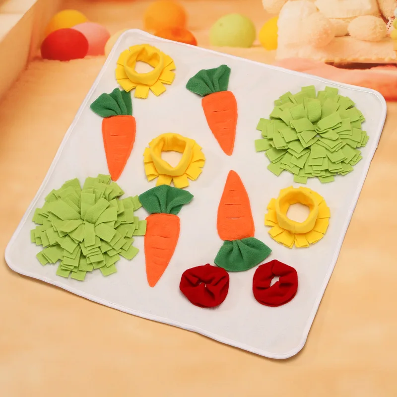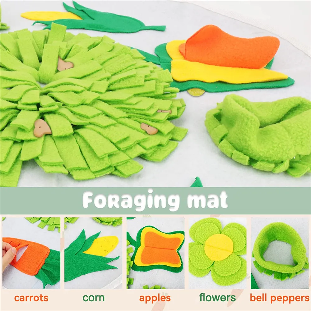 Pet Sniffing Pad Mat Round Carrot Flower Snuffle Mats Little Puzzle Treat Dispenser Bunny Rabbit Chinchillas Guinea Pig ForagingRabbit Foraging Snuffle Mat Carrot